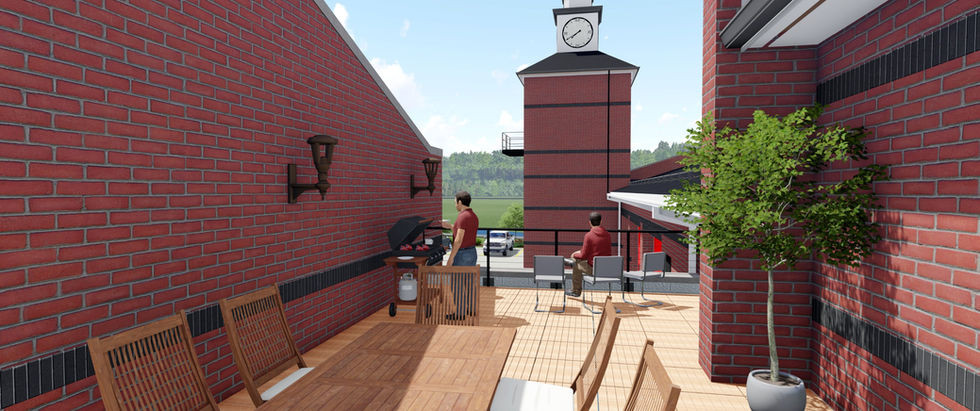 Completed in December of 2024, the two-story, 24,500 S.F. fire station is designed to blend in with the architectural language of Ohio University. The station includes a welcoming lobby with display cases, a small clinic, training/community room, offices, a small conference room, study/report area, five (5) bunk rooms, dayroom, kitchen, outdoor patio, a fitness room, work room, training rooms, training tower with a cupola on top of the roof, six (6) pull through double apparatus bays, and a separate bay to display historic apparatus. Also attached to the station, which is an amenity added based on community feedback, is a drinking fountain and public restroom that is open year-round, located off of the bike path. In addition to the two stairways, there is also an elevator and two fire poles. There are fourteen (14) public parking spots, which includes two EV Charging spots, and behind the station are ten (10) parking spots for firefighter personnel.
