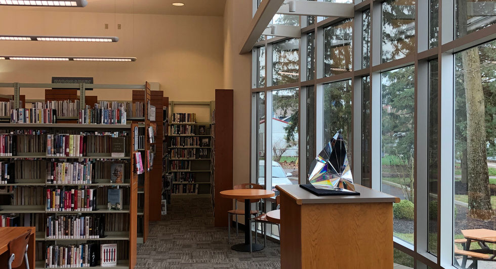 The budget permitted doubling the size of the building, and yet continue the exterior building materials and building lines. The rear of the original building had two rows of six windows. The top row remains, as openings, but the bottom row was opened to provide a large facility. These twelve windows are projected onto the rear curtainwall in a matching series of reflective and non-reflextive glass, tying old into the new. Continuity was maintained on the building exterior by matching the Norman brick, repeating the window and keystone patterns and extending the cornice. The architectural integrity of the original Carnegie style was maintained without duplication of the original, all the while letting the addition make its own statement.